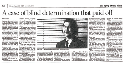 Tony’s career is one of achievement. Five Australian Achiever Awards, ranked in BRW magazine Fast 100, and a regular contributor on a host of television business shows. His success story has been acknowledged in a range of newspaper articles in the Financial Review, Herald Sun, The Age and Sydney Morning Herald. A strong believer in giving back to the community Tony has supported a range of charities and community initiatives, including ‘The Salvation Army’, Bonnie Babes Foundation, and Scope.